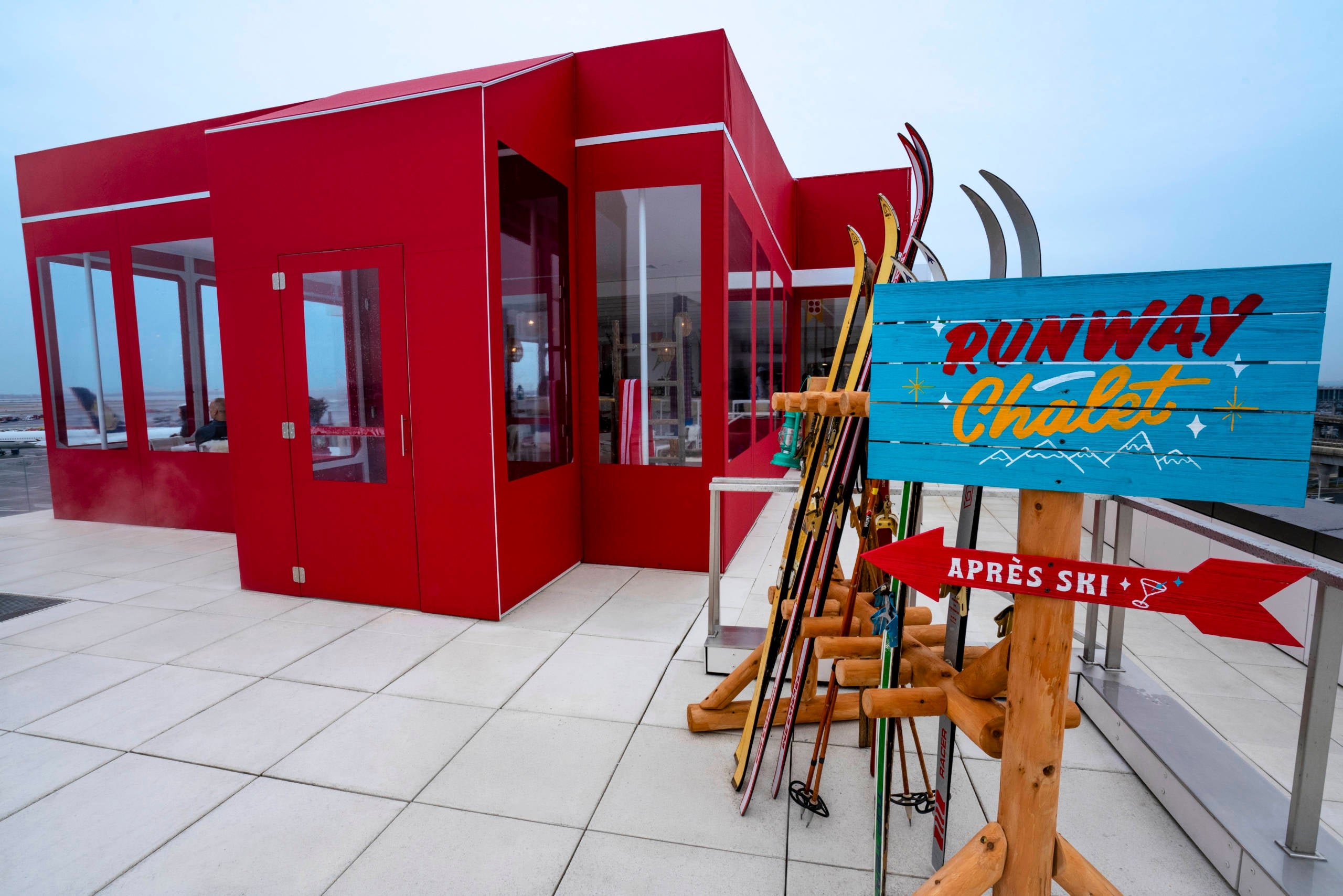 The chalet features 18 special cocktails, including some with aviation geek-approved names from "Eero Dynamics" (bourbon, orange bitters, Angostura bitters and Demerara) to the "Control Tower Sour." You can also opt for a seasonal cocktail like the "Wintry Mix" with vanilla vodka, muddled raspberry, Chambord, pineapple and cranberry juices and lime.