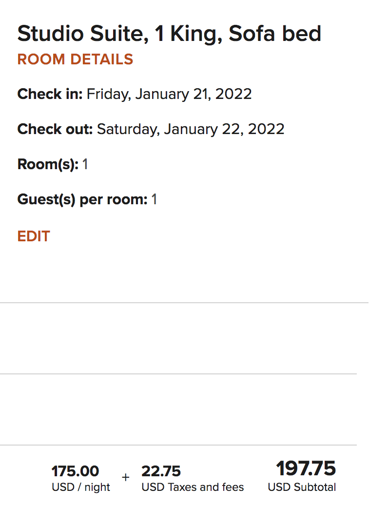 Booking a room through the Capital One Travel portal was easy. The thing that was even more surprising to me, was that for some dates I searched it was even cheaper than booking with Marriott directly. In this example it was $197.75 to book with Marriott directly: