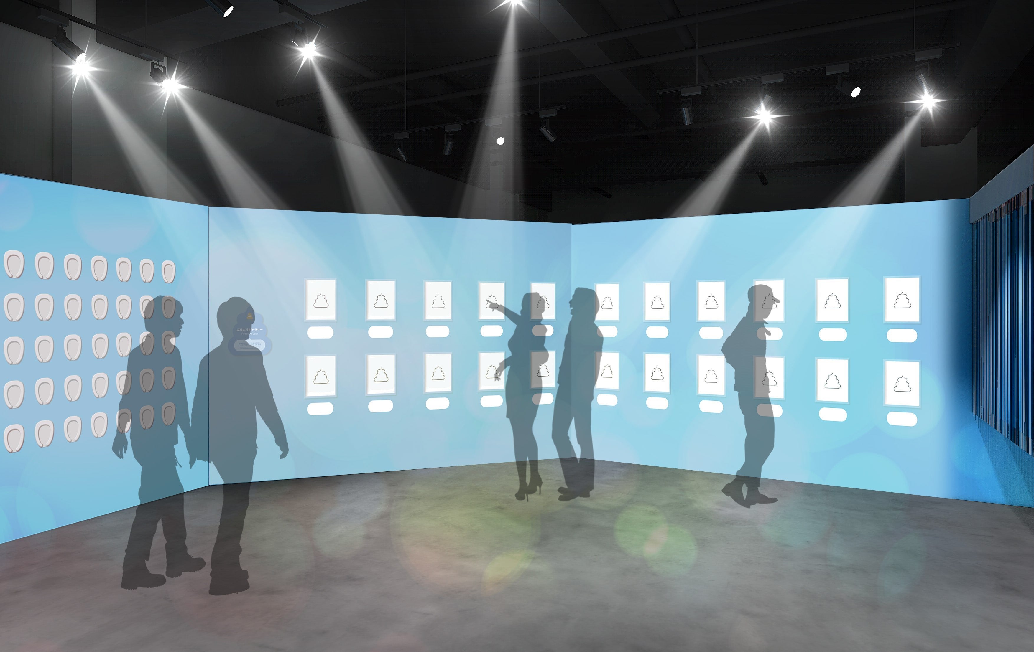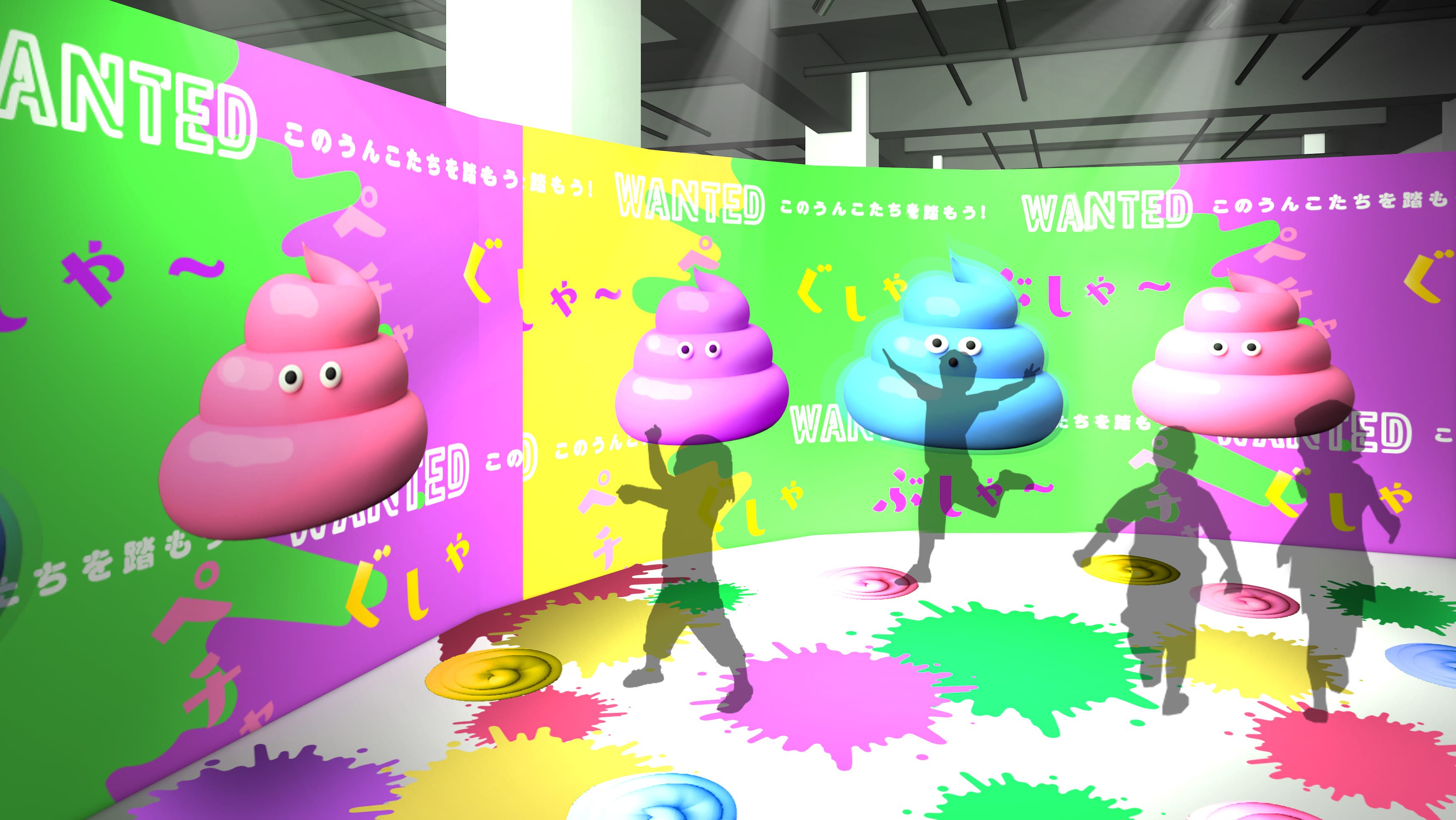 The 'un'teractive zone is where you'll find yourself surrounded by swirls of unko with eyeballs staring back at you. Here, you can play a lovely game of kuso (Japanese for sh*t), which involves stepping on poo-pile light projections in order to splatter them. Fun!