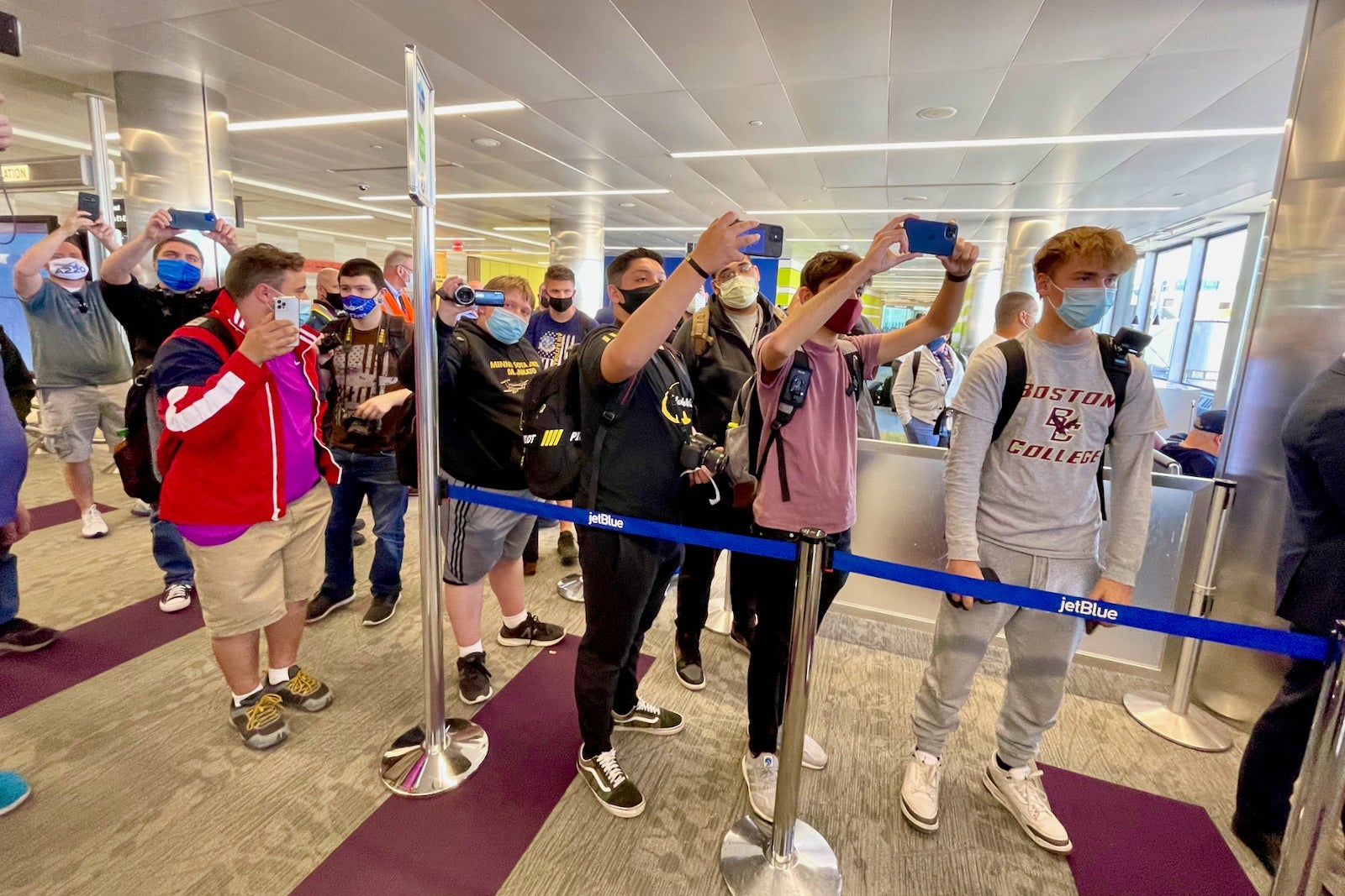Despite the celebrations, some confused travelers weren't aware of what was behind the gateside hullabaloo. I approached one group and asked how they were feeling.
