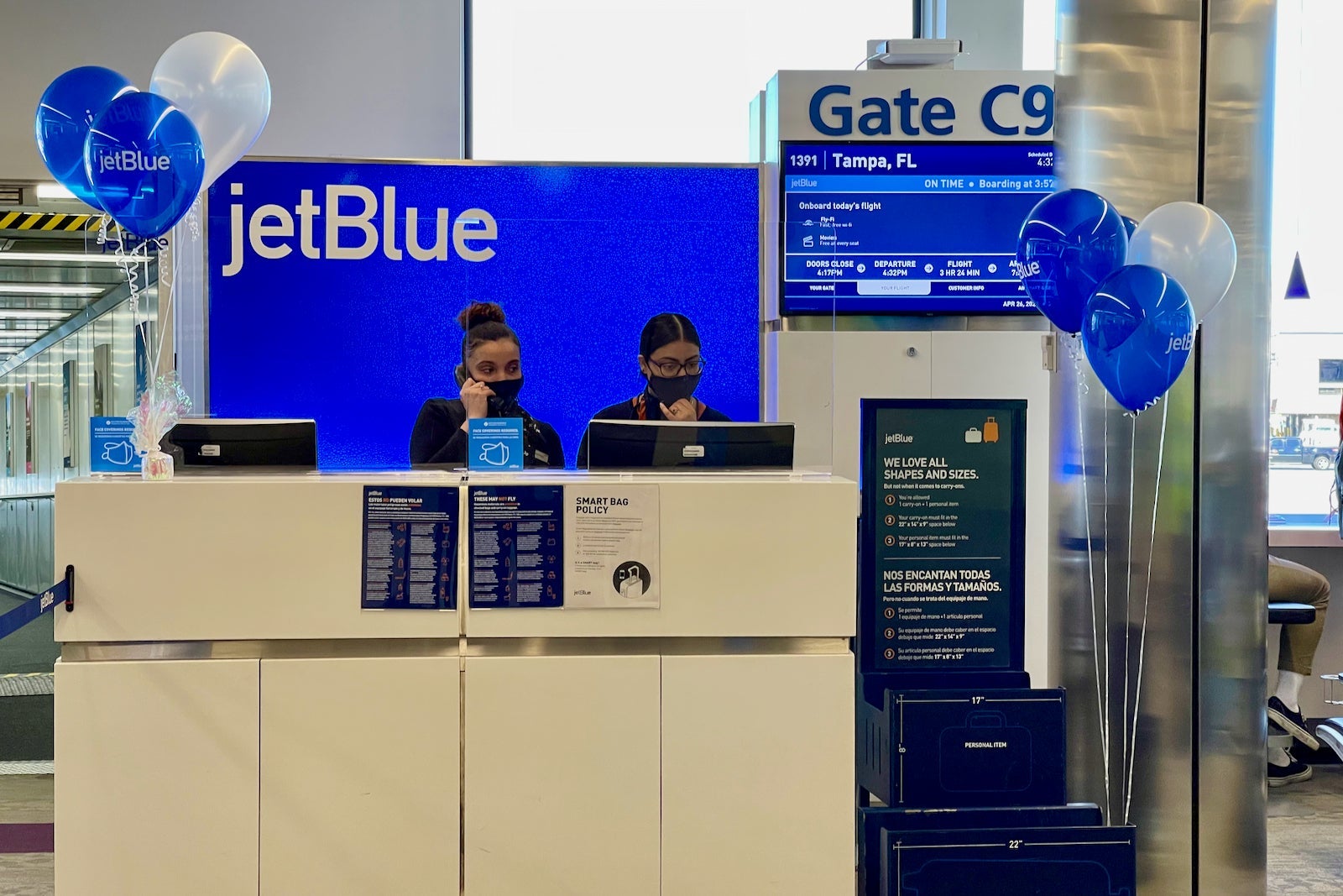 Several balloons adorned the gate podium, though the attention quickly turned to the handful of JetBlue, Pratt & Whitney and Massport executives who gave brief remarks just moments before the 3:57 p.m. boarding time.