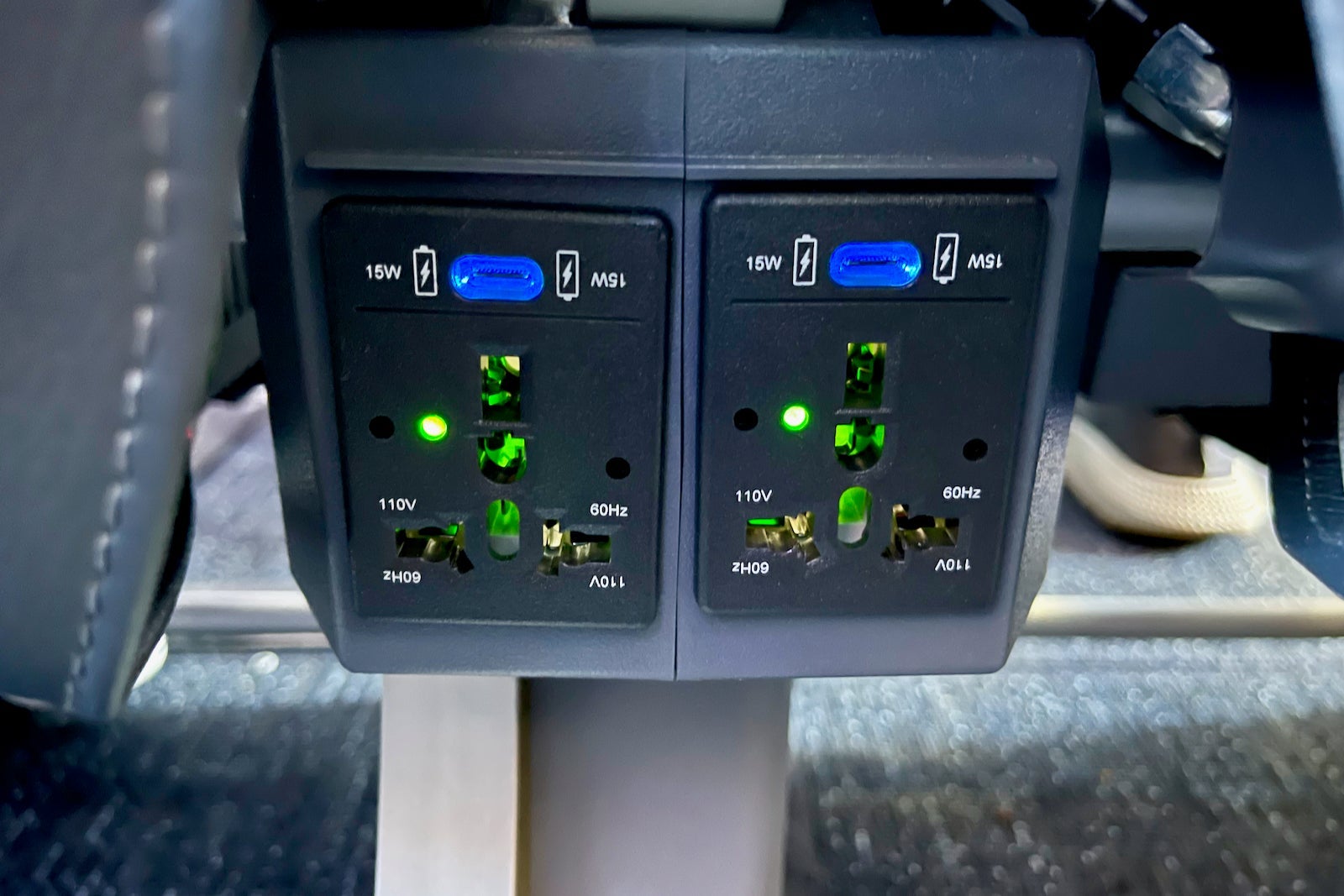 If you prefer to BYOD (bring your own device), you won't run out of juice. There's an AC outlet, 15-watt USB-C port and standard USB-A port at each seat.