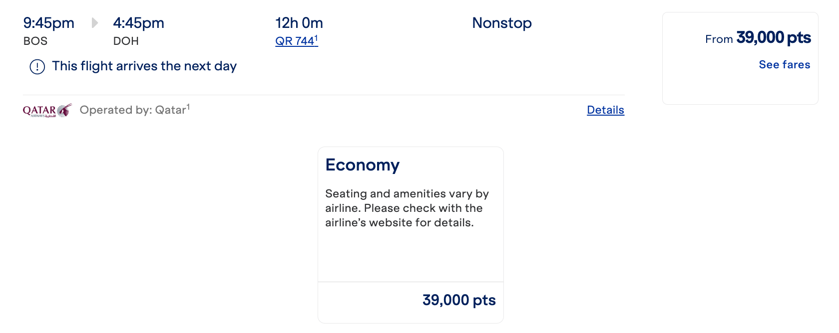 You can also redeem JetBlue points for flights operated by select JetBlue airline partners, including Etihad Airways, Hawaiian Airlines and Qatar Airways. For example, even though JetBlue doesn't fly to Qatar, you could book a trip from Boston to Doha on Qatar Airways for 39,000 TrueBlue points each way.