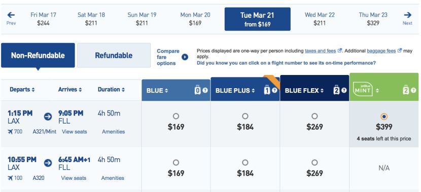 JetBlue's Expanding Mint Service Between Los Angeles and Ft. Lauderdale