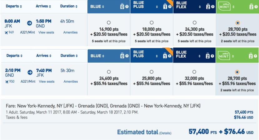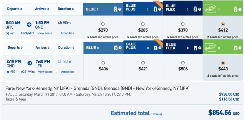 JetBlue Mint is now bookable on flights from New York to Grenada.