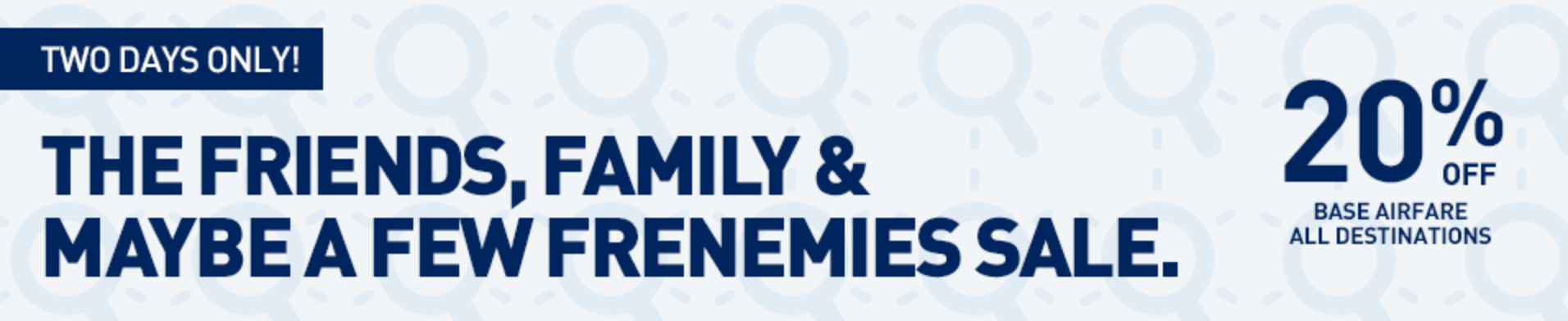 JetBlue is offering flyers a pretty intriguing sale — one it's calling "The Friends, Family & Maybe a Few Frenemies Sale." For a limited time, you can get 20% off the base airfare for your next trip.