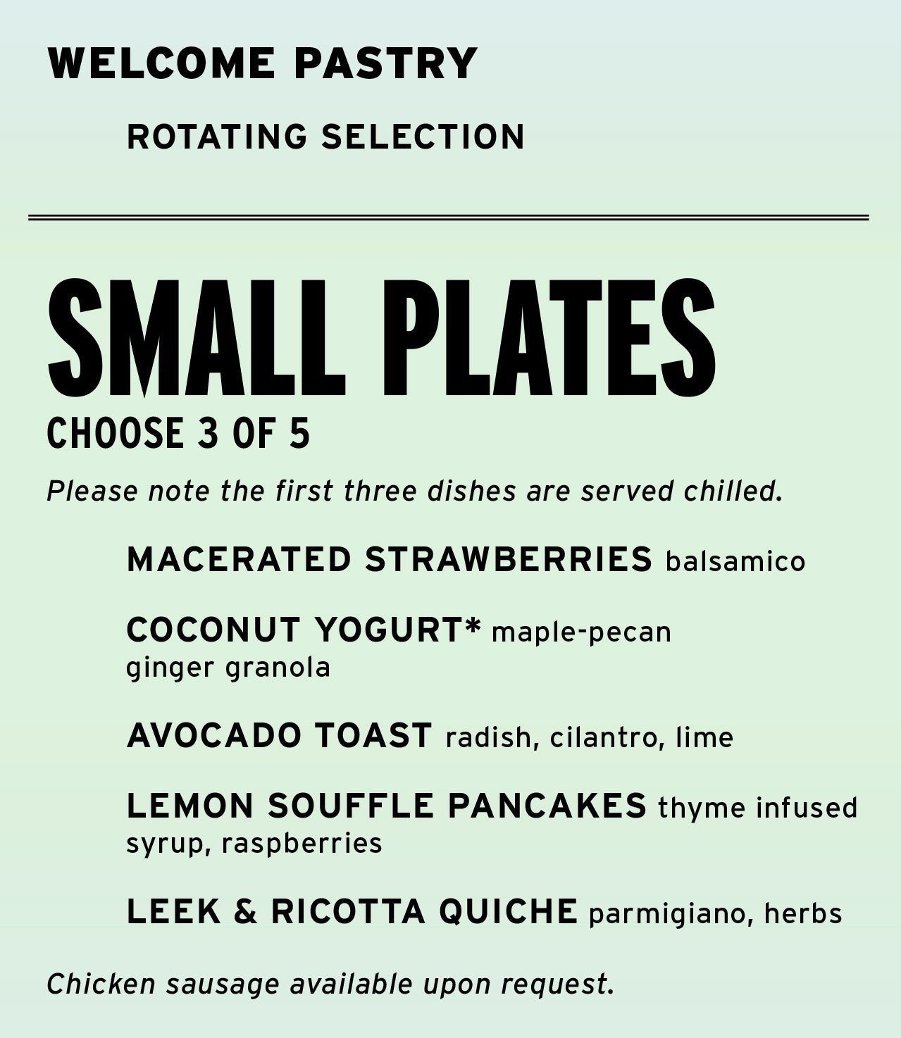 On morning eastbound flights, flyers can choose any three of the five items listed below.