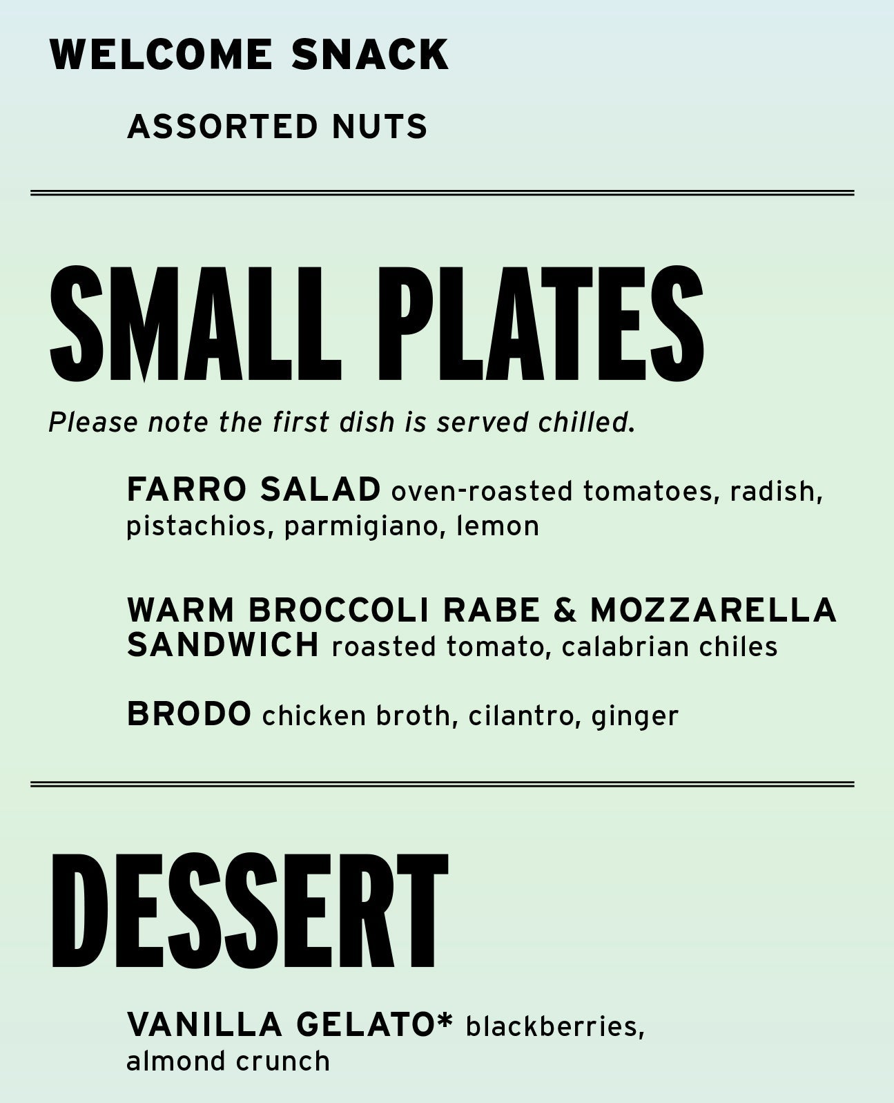 In addition to the meals, DHG is curating the cocktail and wine lists, including cocktails intended to be "shaken on-board" — they can also be ordered without alcohol, if you prefer.