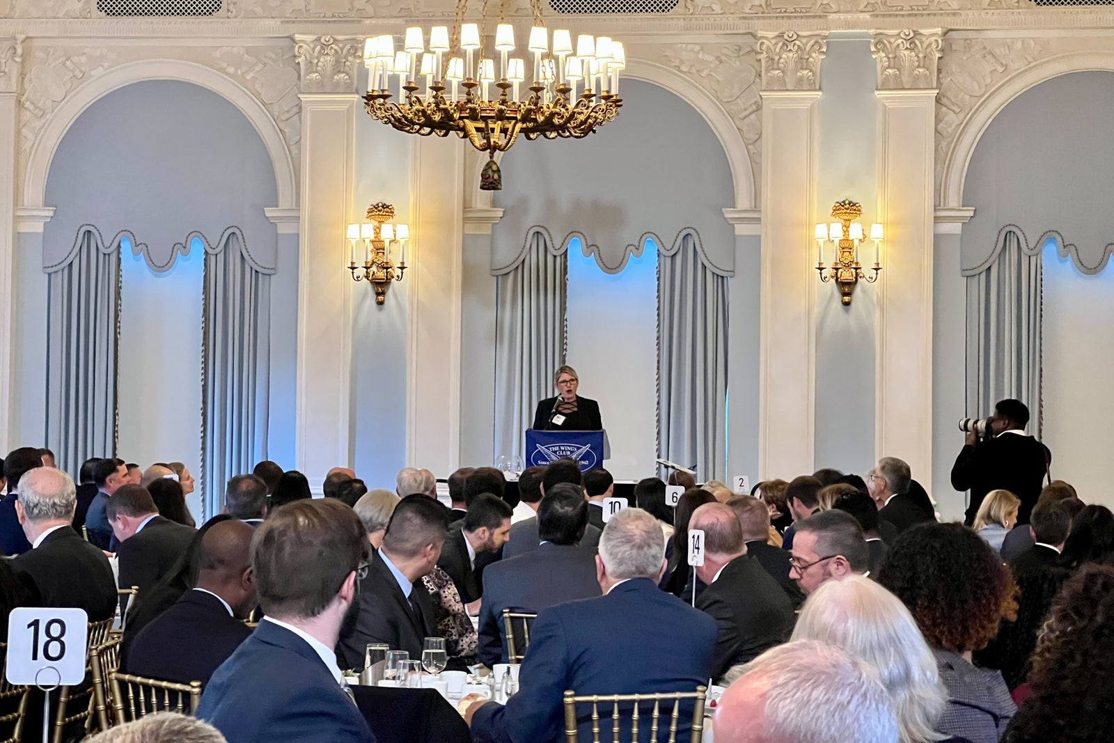 Geraghty was addressing a room full of roughly 250 well-dressed aviation executives, bigwigs and other industry dignitaries at the monthly Wing's Club luncheon on Thursday at the Yale Club in Midtown Manhattan.