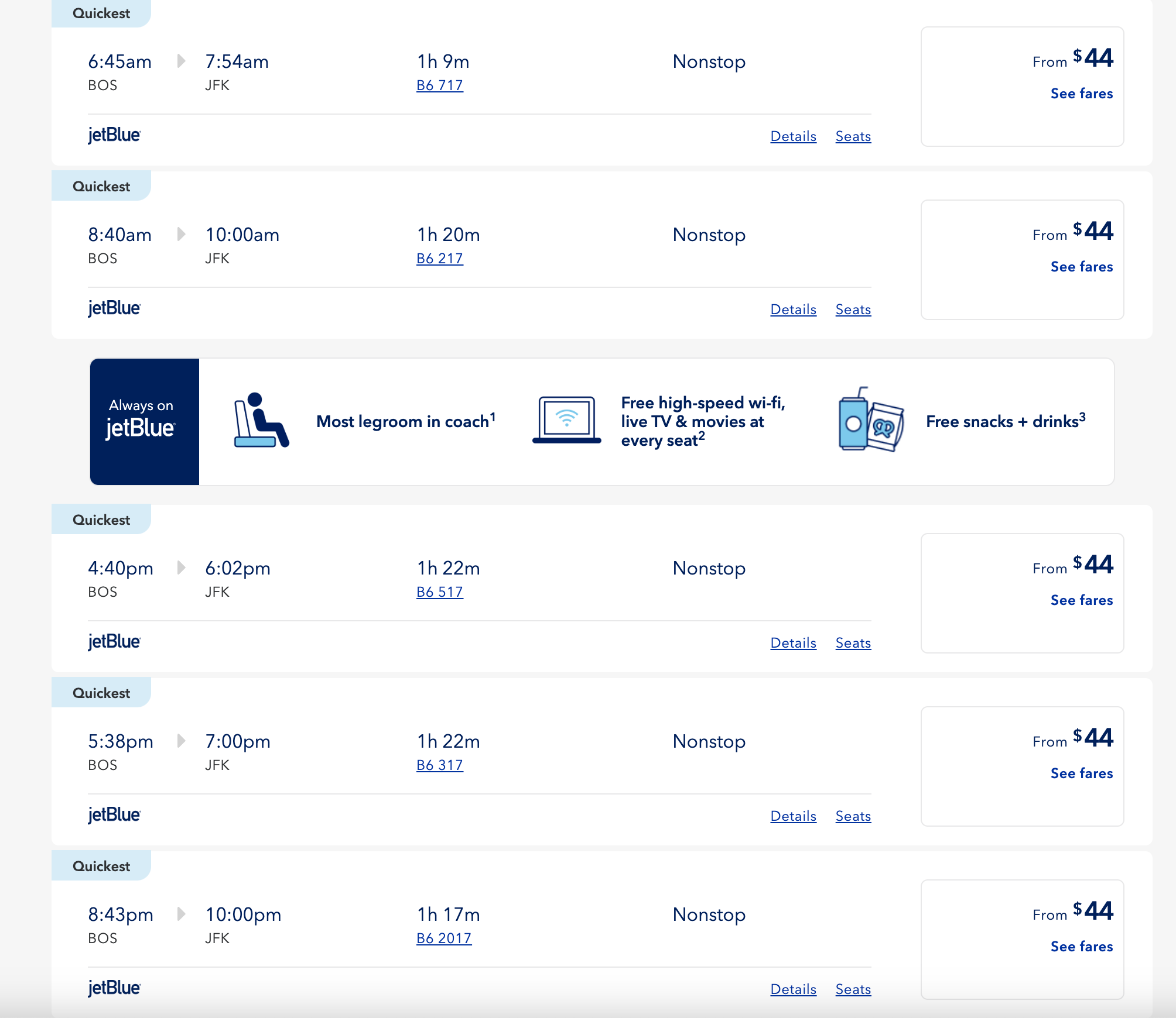 To ensure you're getting the lowest possible fare, we recommend booking these flights directly on JetBlue's website rather than a third-party booking site.