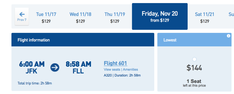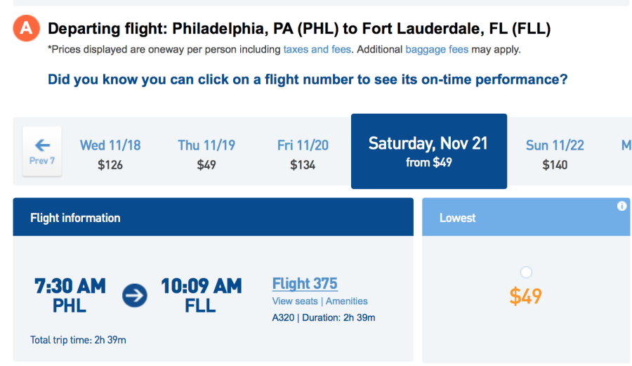 For comparison, a similar flight from New York (JFK) to Ft. Lauderdale will run you $144 on the same day, so there is definitely value to be had with the sale from Philly.