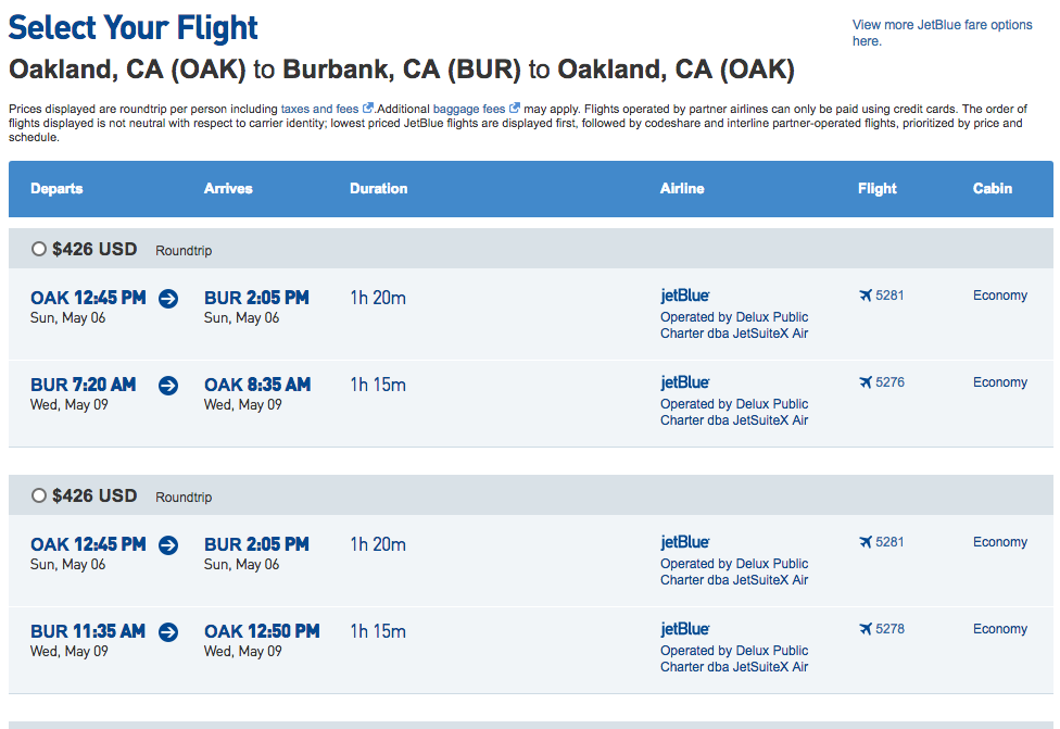Starting May 1, JetBlue will place its "B6" airline code on several JetSuiteX Air-operated flights, departing out of private terminals and fixed base operators (FBOs) throughout the western US, including Burbank (BUR), Concord (CCR), Oakland (OAK) and Las Vegas (LAS) airports.