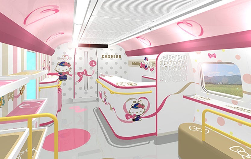 While the details of the interior have not been revealed, JR West promised that the train will have two carriages with "plenty of playfulness" of Hello Kitty world. The first carriage will be called “Hello! Plaza!” and it will feature a gift shop and an exhibition space.