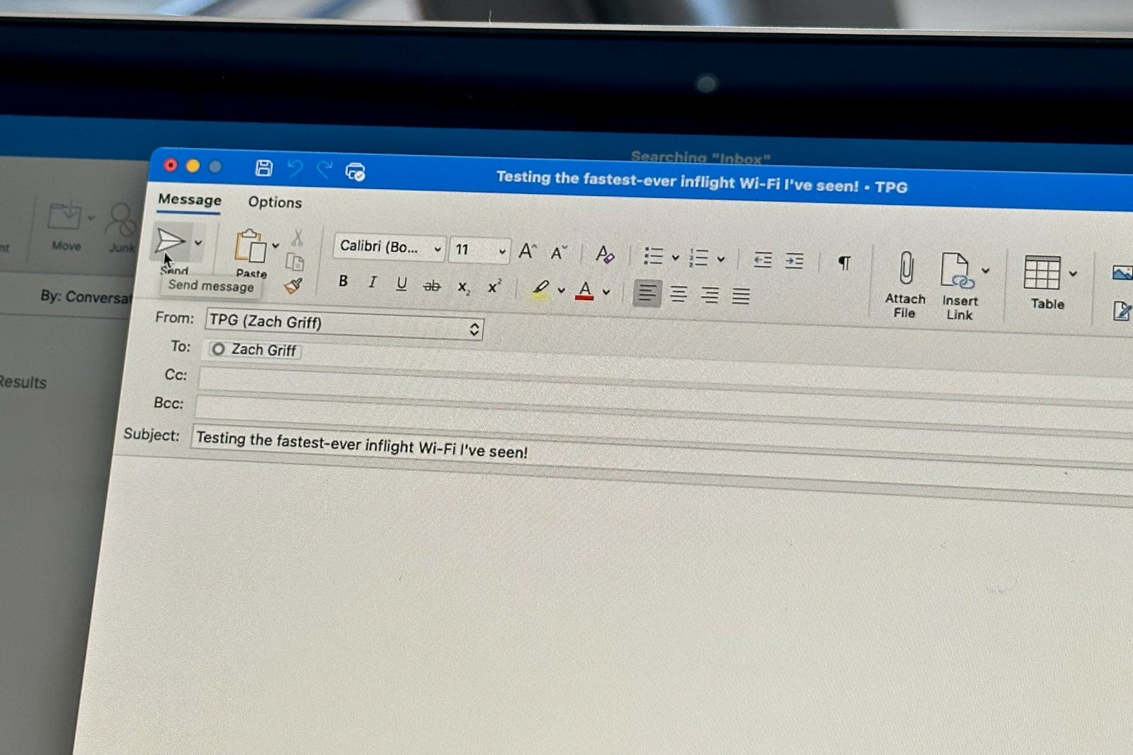 Less than 10 seconds later, my phone was buzzing. I had just received an email with the following subject line: "testing the fastest-ever inflight Wi-Fi I've seen!"