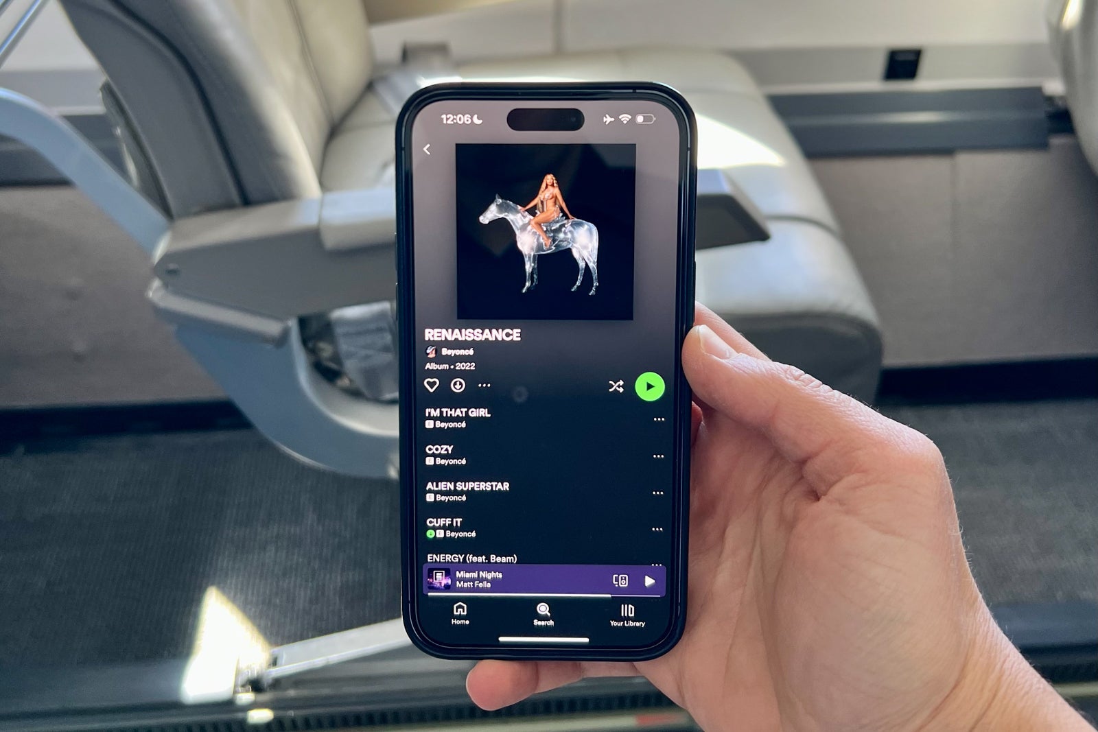 While I had no problem streaming Beyoncé's latest hits without any lag, I wanted to take the test a step further — could I prepare for my next United flight by downloading the entire "Renaissance" album now?