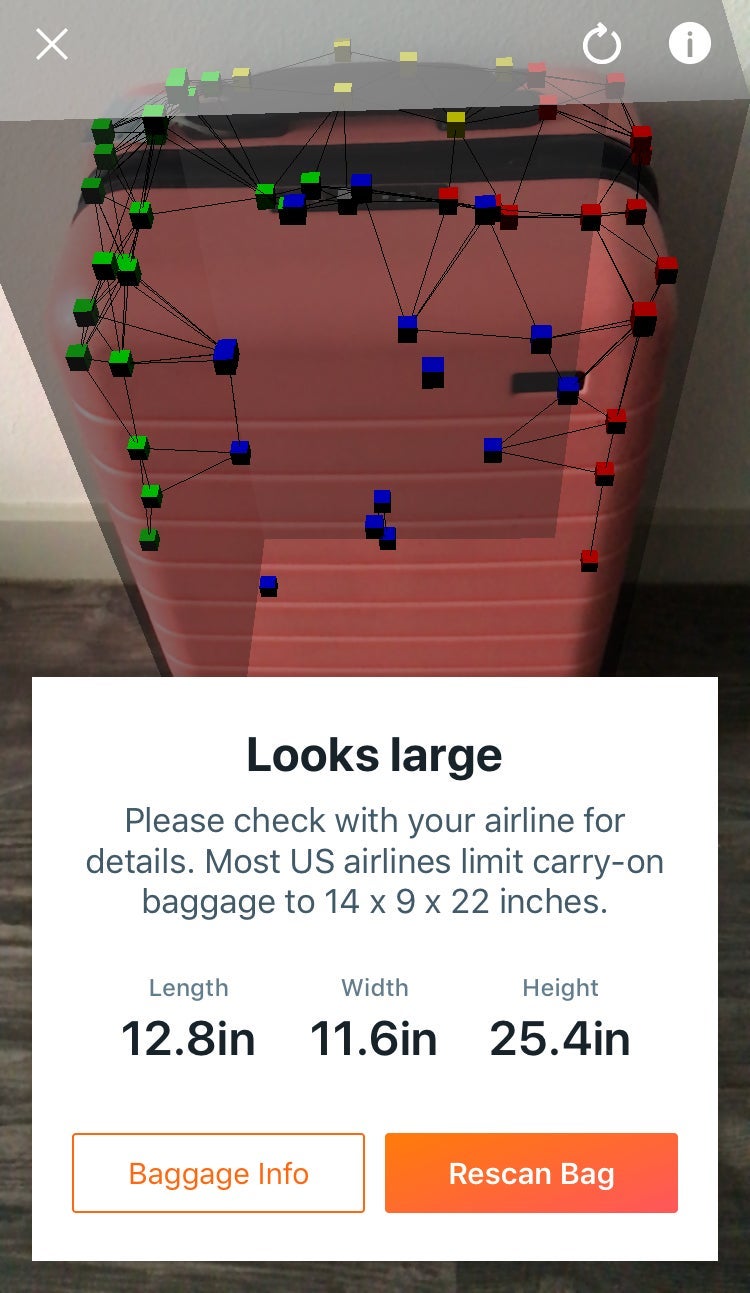 Errrrbody's getting into the augmented reality bag scan game. A couple of weeks ago, we wrote about KLM's new AR feature, which allows you to use a camera phone coupled with the KLM app to check if your bags will qualify as carry-on luggage. The problem with that tool, however, was that 1) you can only access the feature through an existing KLM booking and 2) the measurements obviously are calibrated for KLM restrictions alone.