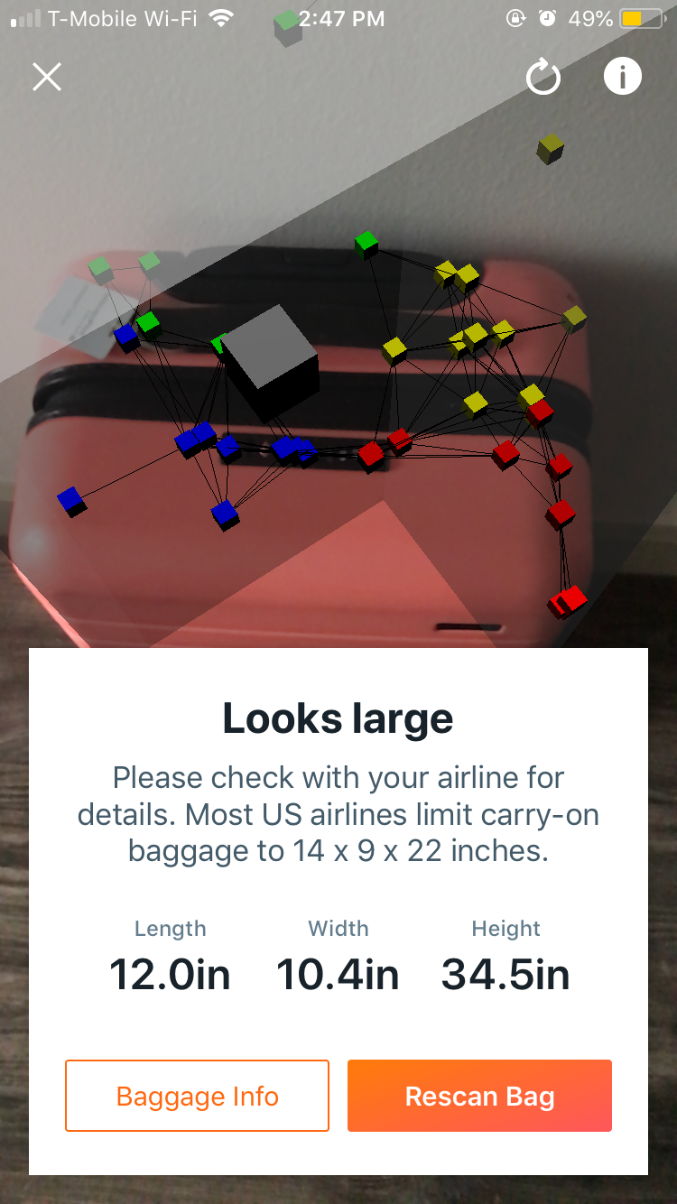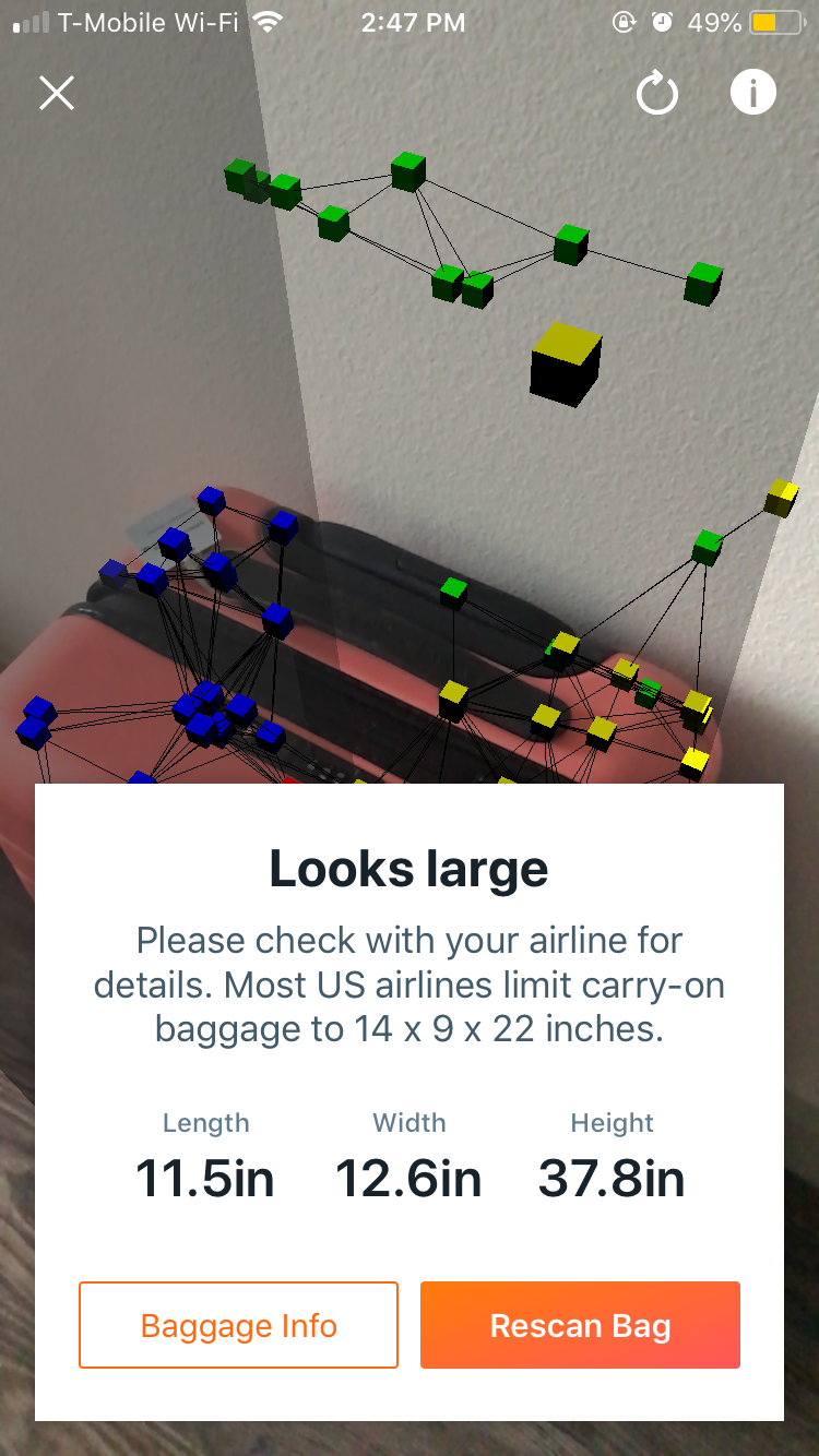 However, the app can be a little finicky. For instance, it picked up on points against my wall, even though the suitcase is noticeably different in color and shape than the wall.