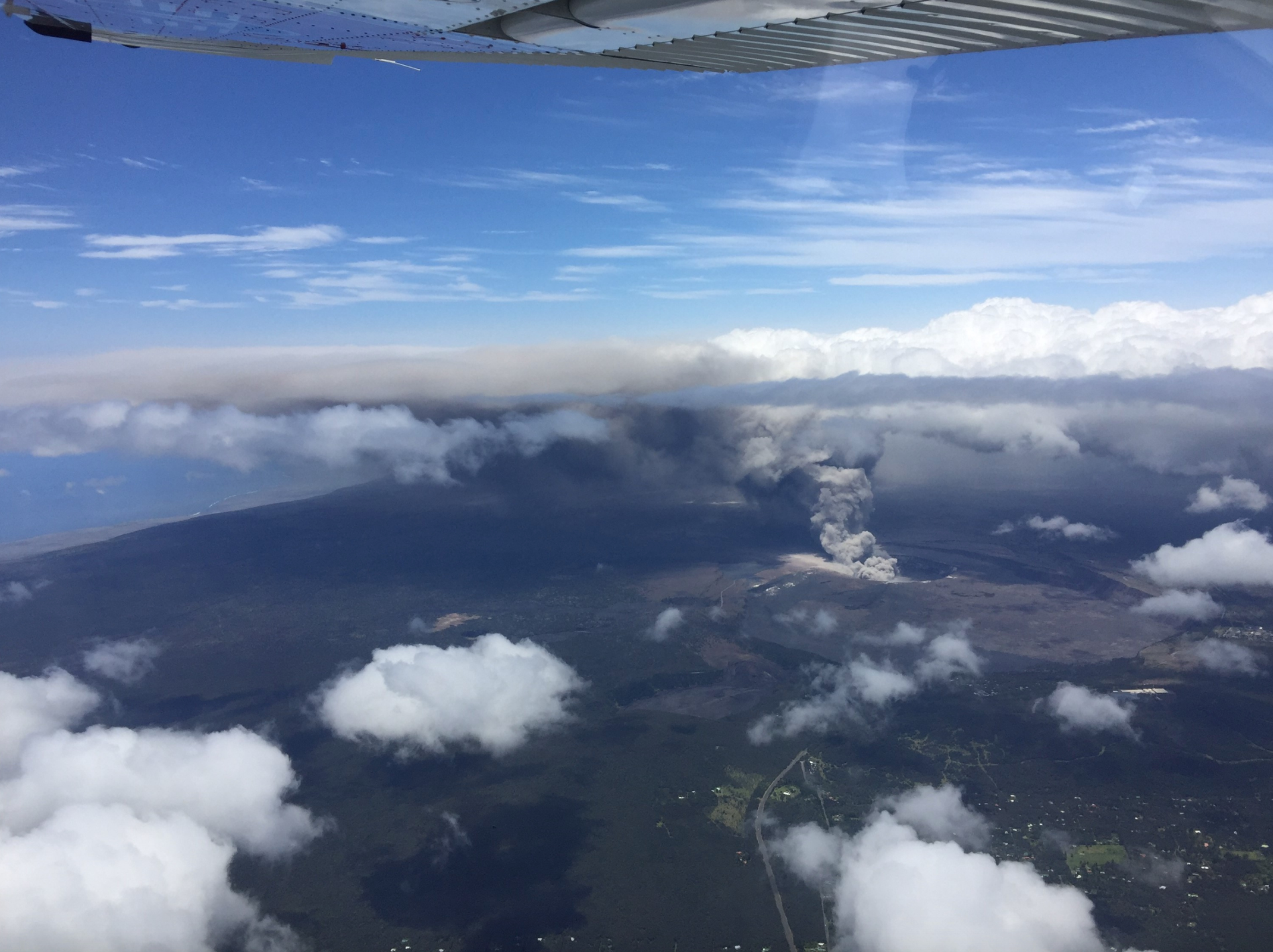 According to pilots' reports, the wall of smoke swirled as high as 12,000 feet into the air after multiple small earthquakes shook the Big Island on Tuesday.