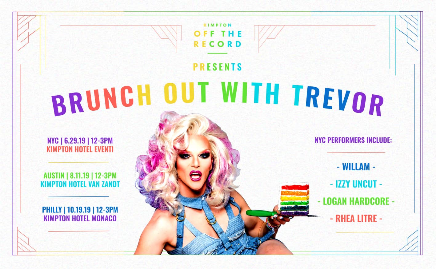 Select Kimpton hotels are helping to raise money for The Trevor Project by hosting drag brunches in New York, Austin and Philadelphia during each city's Pride week. 100% of proceeds from the events will go to support the efforts of The Trevor Project, a national organization that provides crisis intervention and suicide prevention services to lesbian, gay, bisexual, transgender, queer & questioning (LGBTQ) people under 25.