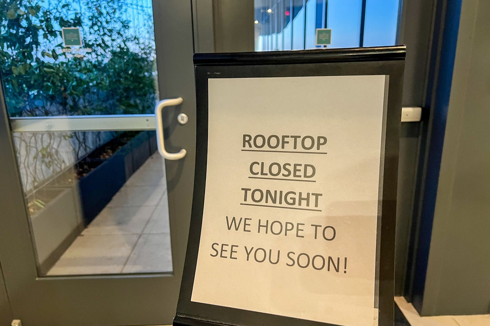 However, I was able to grab a drink from the downstairs bar and bring it upstairs. The hotel staff said that, despite a sign saying it was closed, anybody could still sit outside on the deck.