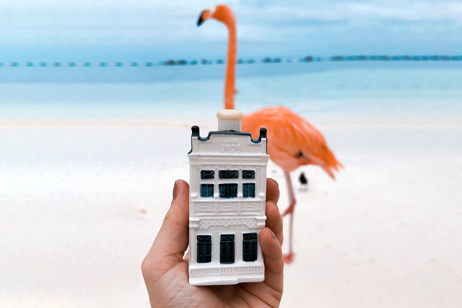 At this year's birthday party, the airline unveiled house No. 103: a miniature Delftware replica of the Ecury House in Aruba. As part of the festivities held in Aruba, KLM president and CEO Marjan Rintel presented the first miniature to Agustin Vrolijk — acting governor of Aruba — and to the Ecury family.