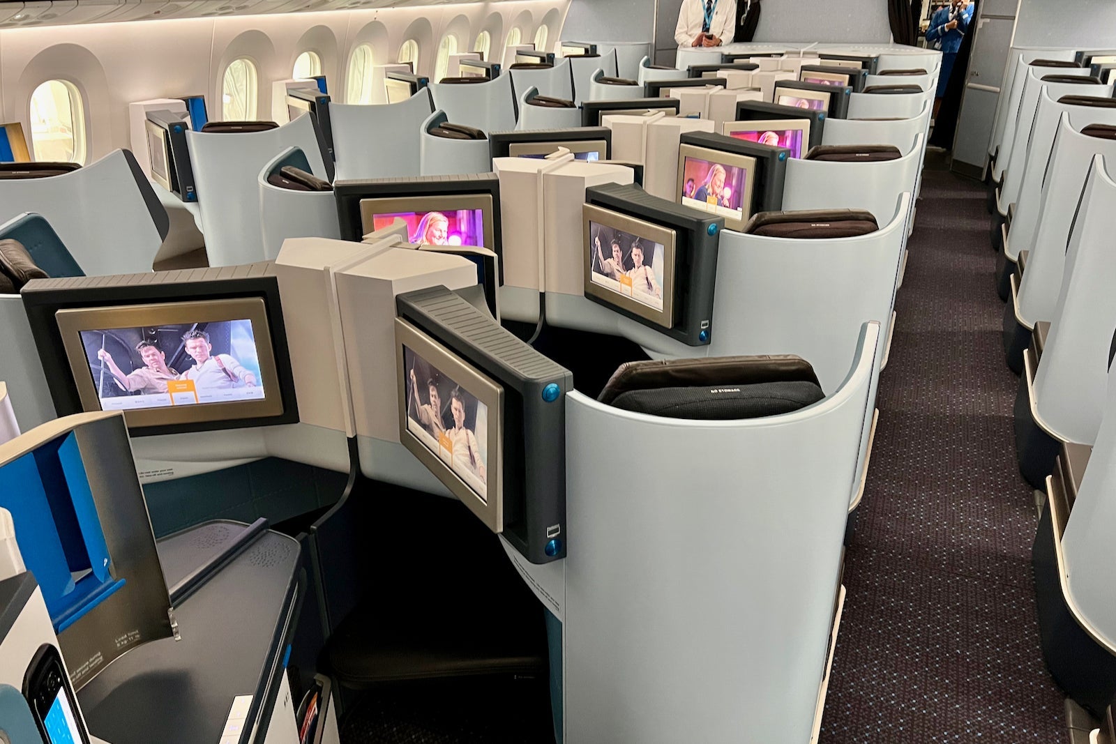 Boarding was efficient. While the economy cabin filled up, just 10 of the business-class pods were occupied — a few of which were taken by last-minute operational upgrades.