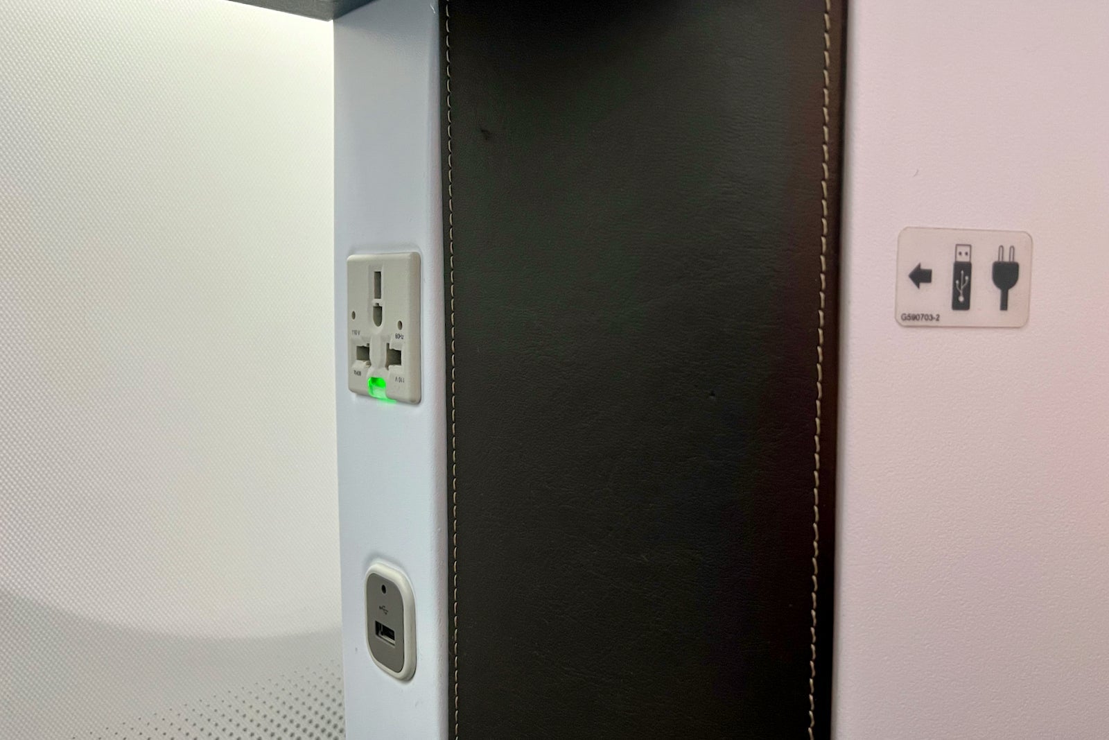 One perk of flying on a plane designed for long-haul travel is the availability of power ports and USB outlets.