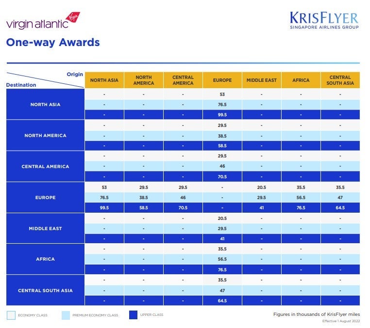 Additionally, KrisFlyer's new Virgin Atlantic award chart incorporates a similar increase in redemption costs for consumers, with new rates averaging about 17.5% above previous levels.