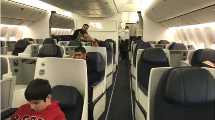 As the video panned to economy, we were just as shocked as this kid to see a newly released economy cabin arranged with just nine seats across. With United and American Airlines already flying planes with 10-wide economy cabins and British Airways and Cathay Pacific planning to do the same, it's refreshing to see a new 777 cabin arrangement with a slightly less cramped economy class.
