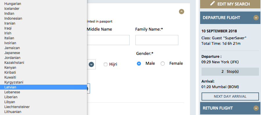 Reports from 2013 and 2014 indicate that Saudia, Saudi Arabia's national carrier, won't fly Israeli citizens either. Even when we tried to purchase a ticket on Saudia's website, from New York JFK to Mumbai (BOM), there was no option to indicate the passenger's nationality as Israeli.