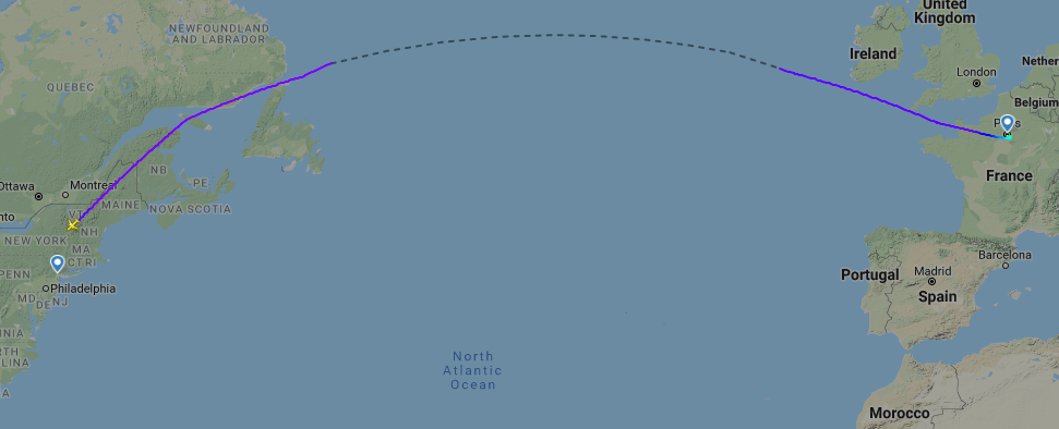The plane is currently enroute from Paris (ORY) to Newark (EWR).