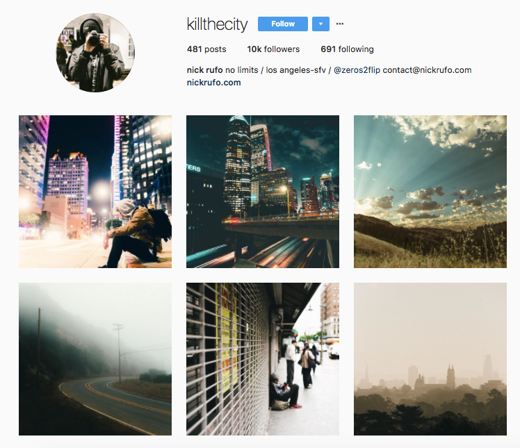 Nick Rufo, another Angeleno photographer, loves his city and wants others to see its beauty. His style — he shoots mainly landscapes and the occasional portrait — has drawn its fair share of fans and he's amassed over 10,000 followers, with photos ranging from angelic blue skies and skyscrapers to portraits of up-and-coming rappers and skateboarders.