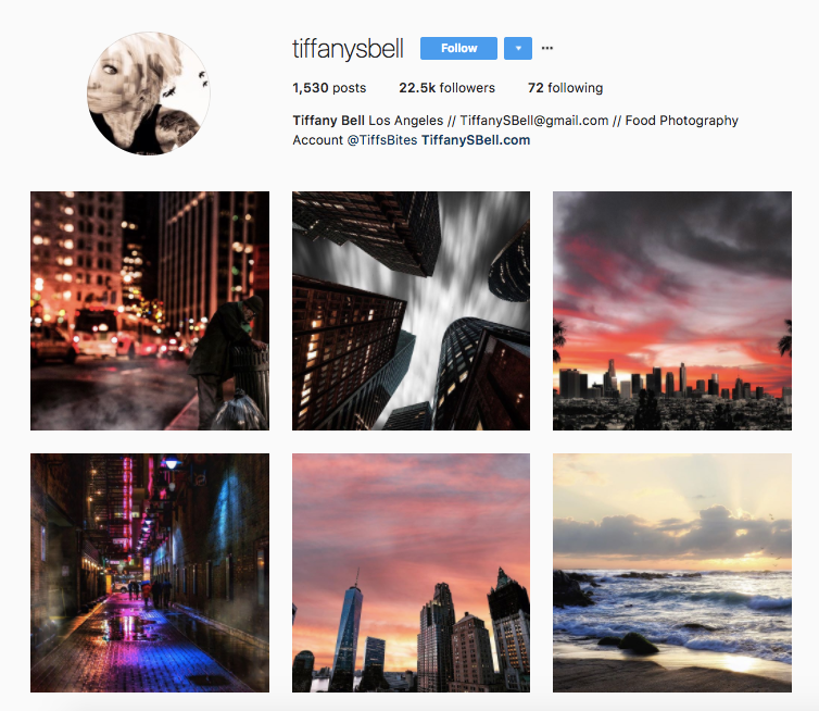 For Tiffany Bell, photography was just a minor interest in her life, but it eventually snowballed into a career. Through her work, she has taken photos of just about everything — from cities, humans, animals, nature and landscapes to interiors, exteriors, food and cocktails. She says photography taught her to "look at the ordinary and find the extraordinary" and it's true — she's managed to make gray skyscrapers and dark alleyways look like art in her shots.