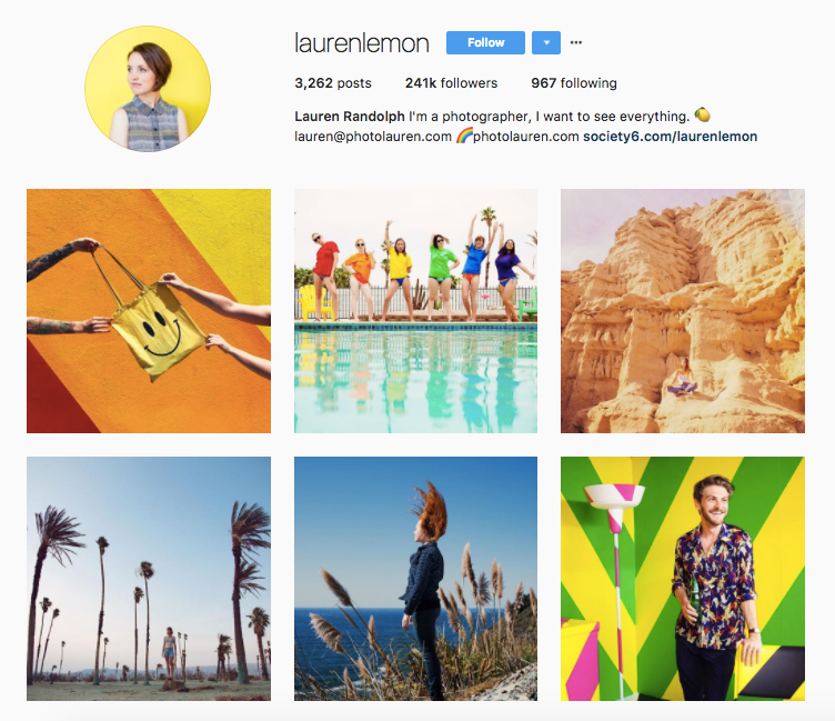 Have you ever wanted to jump into a photo? That's what LA photographer Lauren Lemon makes us want to do with her rainbow-colored Instagram feed. She uses her art to bring people together and has even promoted public art projects — like photographing a row of houses that had been painted pink due to an impending demolition.