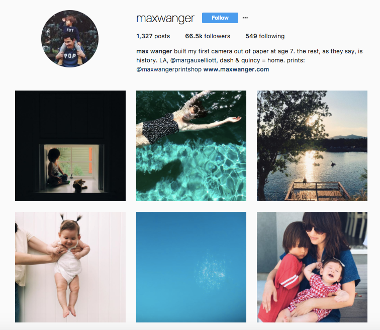 Per his bio, Max Wanger built his first camera out of paper at age seven, and his photography skills have only blossomed since. His feed consists of palm trees, sunlight and water sports — key LA icons. Pair that with adorable photographs of his children, and you'll never want to scroll away.