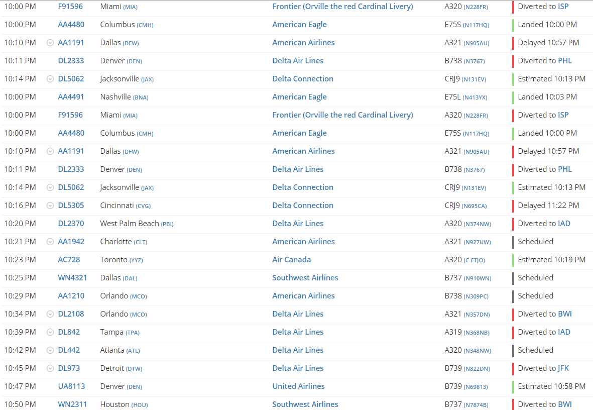 Update 10:10pm: According to FlightRadar24, 16 flights bound for LaGuardia have diverted since 9pm.