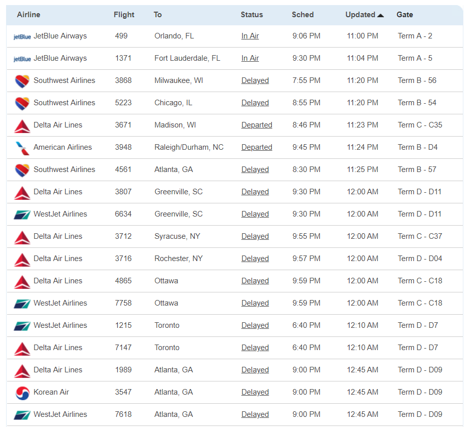 Update 11:39pm: FlightView's departures board for LGA shows that airlines are still planning to push around 11 more flights between now and 12:45am ET: