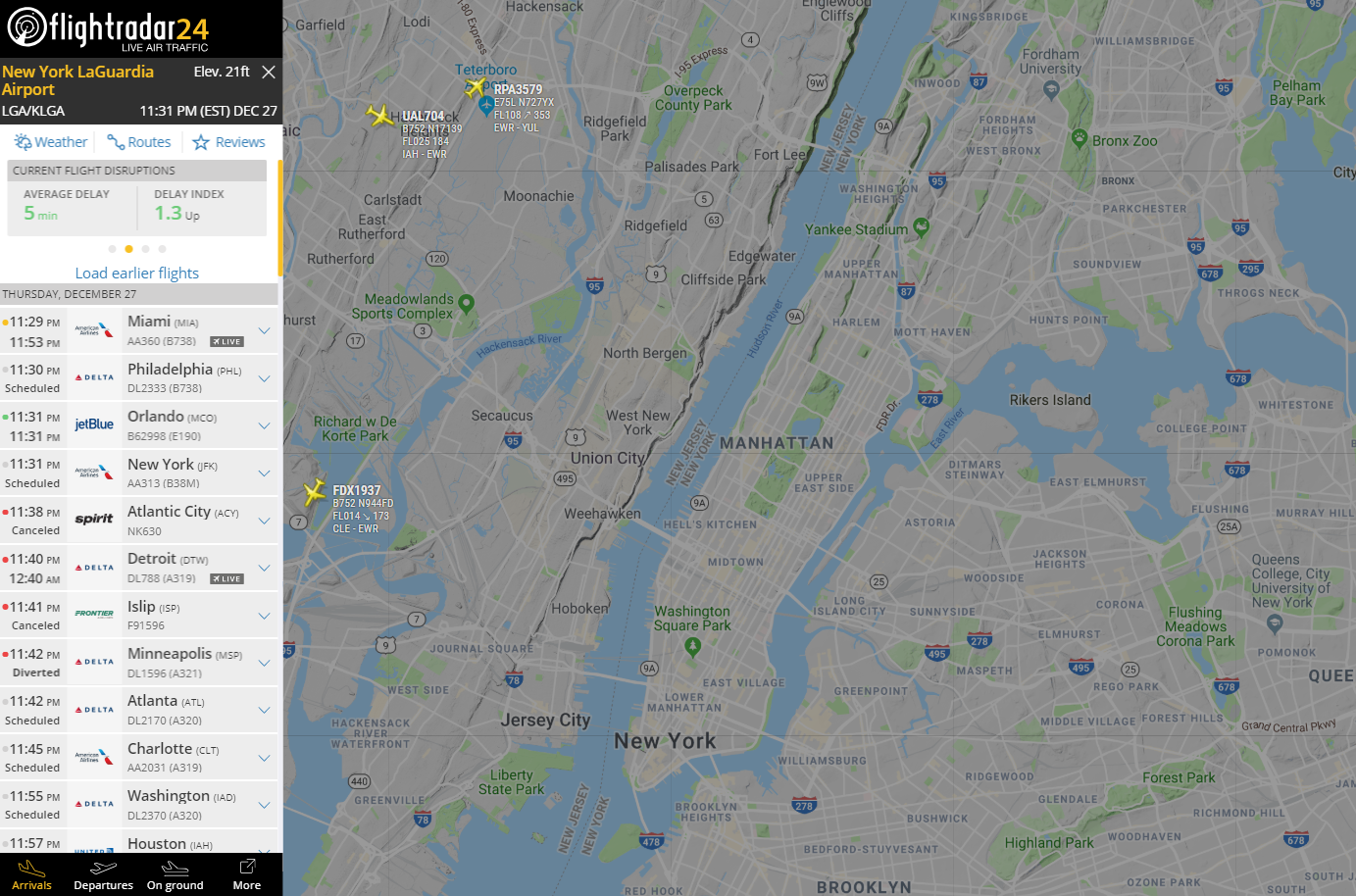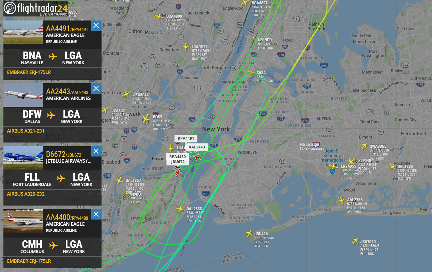 Update 11:31pm: FlightRadar24 shows eerily-empty skies around LaGuardia at this time:
