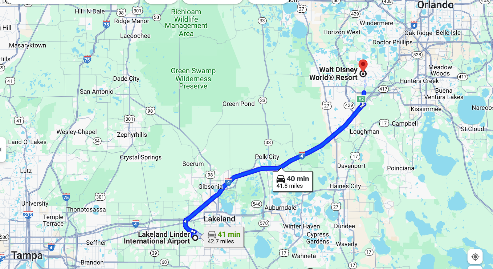 Situated along Florida's I-4 corridor, the airport is also just about 40 minutes from Walt Disney World, as estimated by Google Maps.