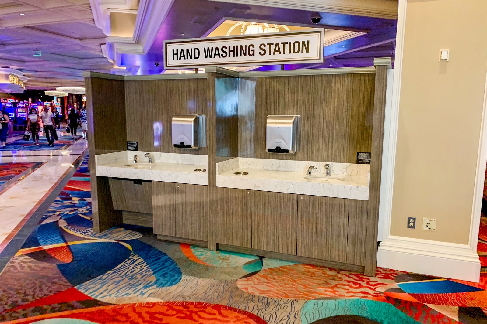 Wynn casinos have implemented a cleaning and sanitization plan that includes regular sanitization of guest counters, slot machines, card tables and card shufflers plus the placement of hand sanitizer throughout the casino floors, outside entrances and next to all ATMs.