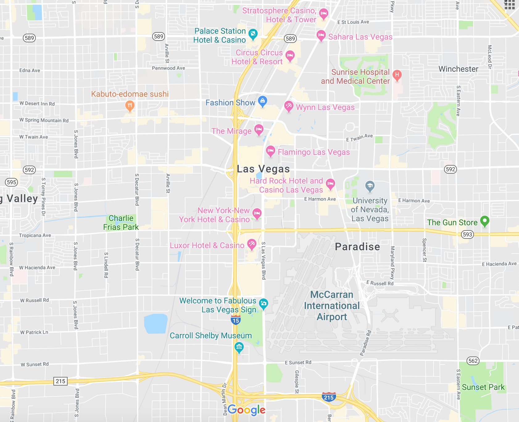 • Zone 1 — $19 from Sunset Road north to Tropicana Avenue (think Luxor and Mandalay Bay)