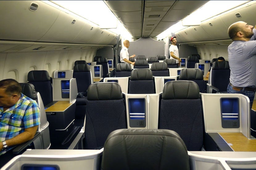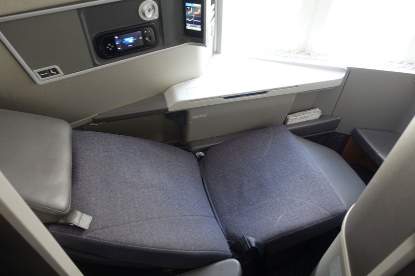 Our American Airlines flight featured lie-flat reverse herringbone seats made by Zodiac.