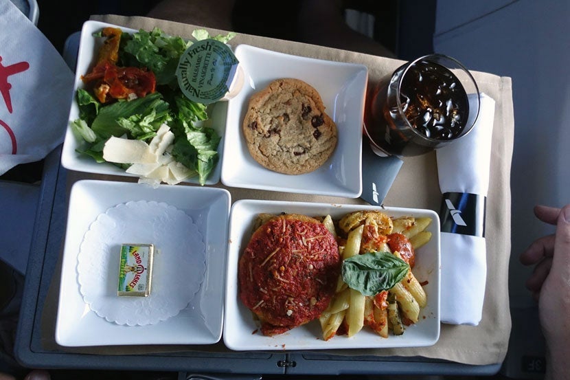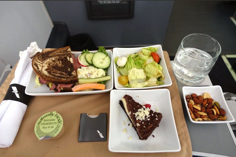 Toasted mixed nuts, romaine lettuce salad, a roast beef sandwich with potato salad and a chocolate cheesecake all exceeded my expectations for this leg.