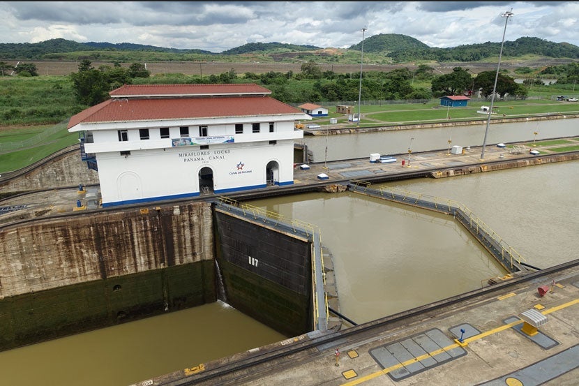 The entrance to the Miraflores Visitor Center at the Panama Canal.