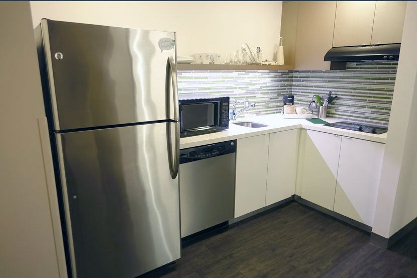 If you're staying for a longer period of time, you can easily cook whatever you want in the room's kitchen area.