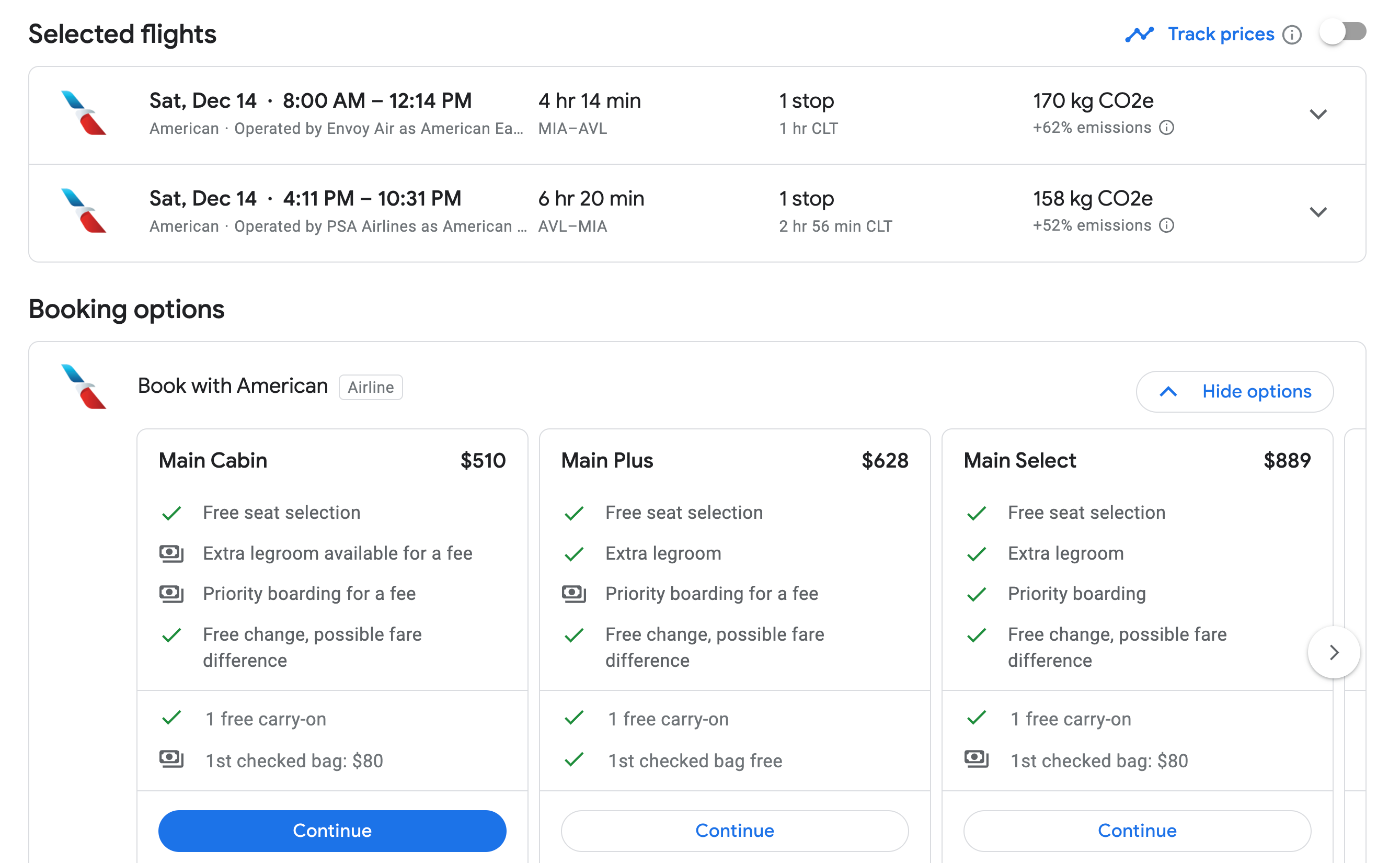 So, if you're 2,000 Loyalty Points short of reaching your elite status, you could choose a fare that costs at least $400 in base fare, like this same-day return from Miami International Airport (MIA) to Asheville Regional Airport (AVL) via Charlotte Douglas International Airport (CLT) on Saturday, Dec. 14.