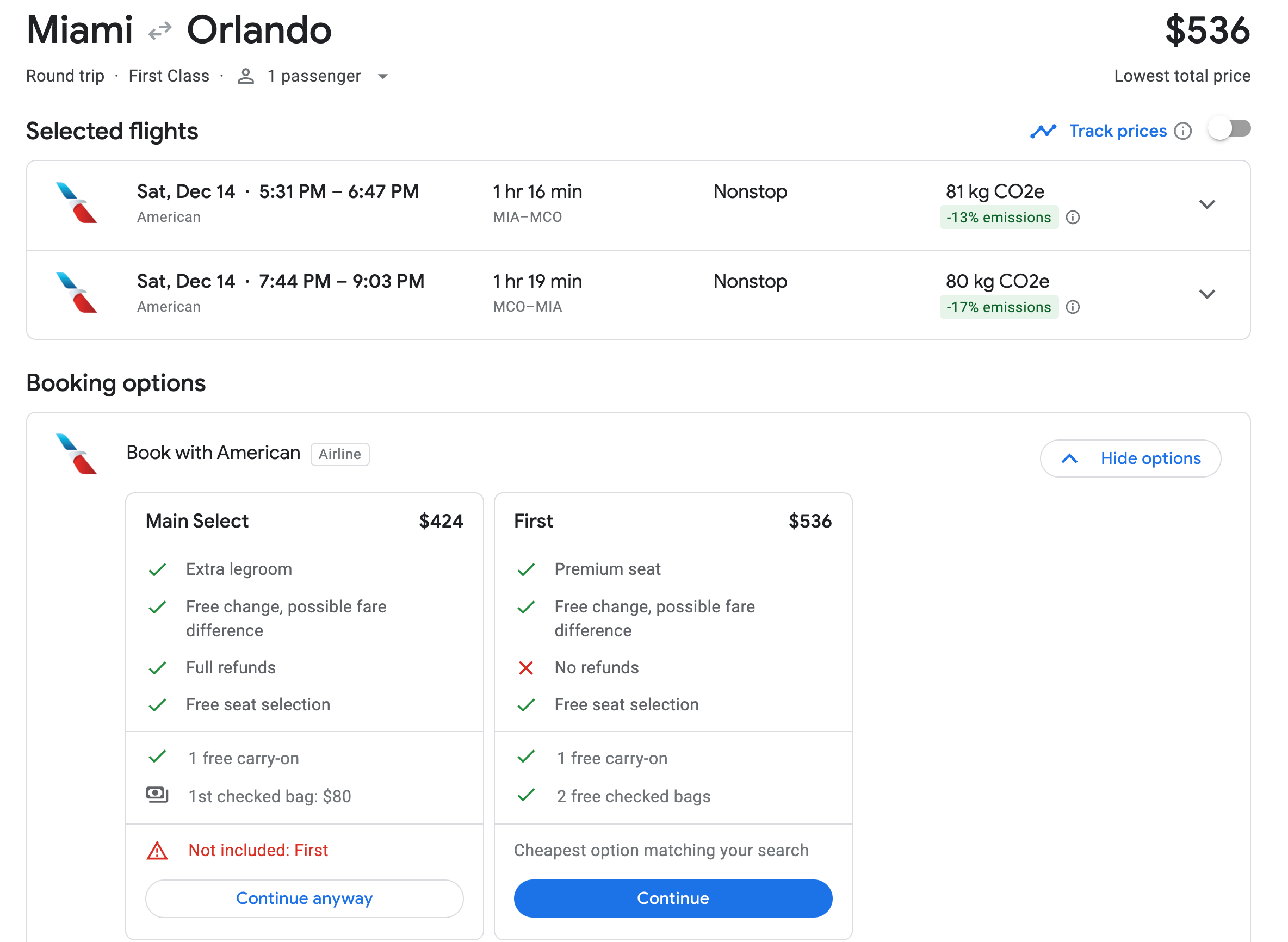 Or, if you wanted to spend even less time on a plane, a first-class round trip from Miami to Orlando International Airport (MCO) would take you just a few hours with a first-class fare costing $536.