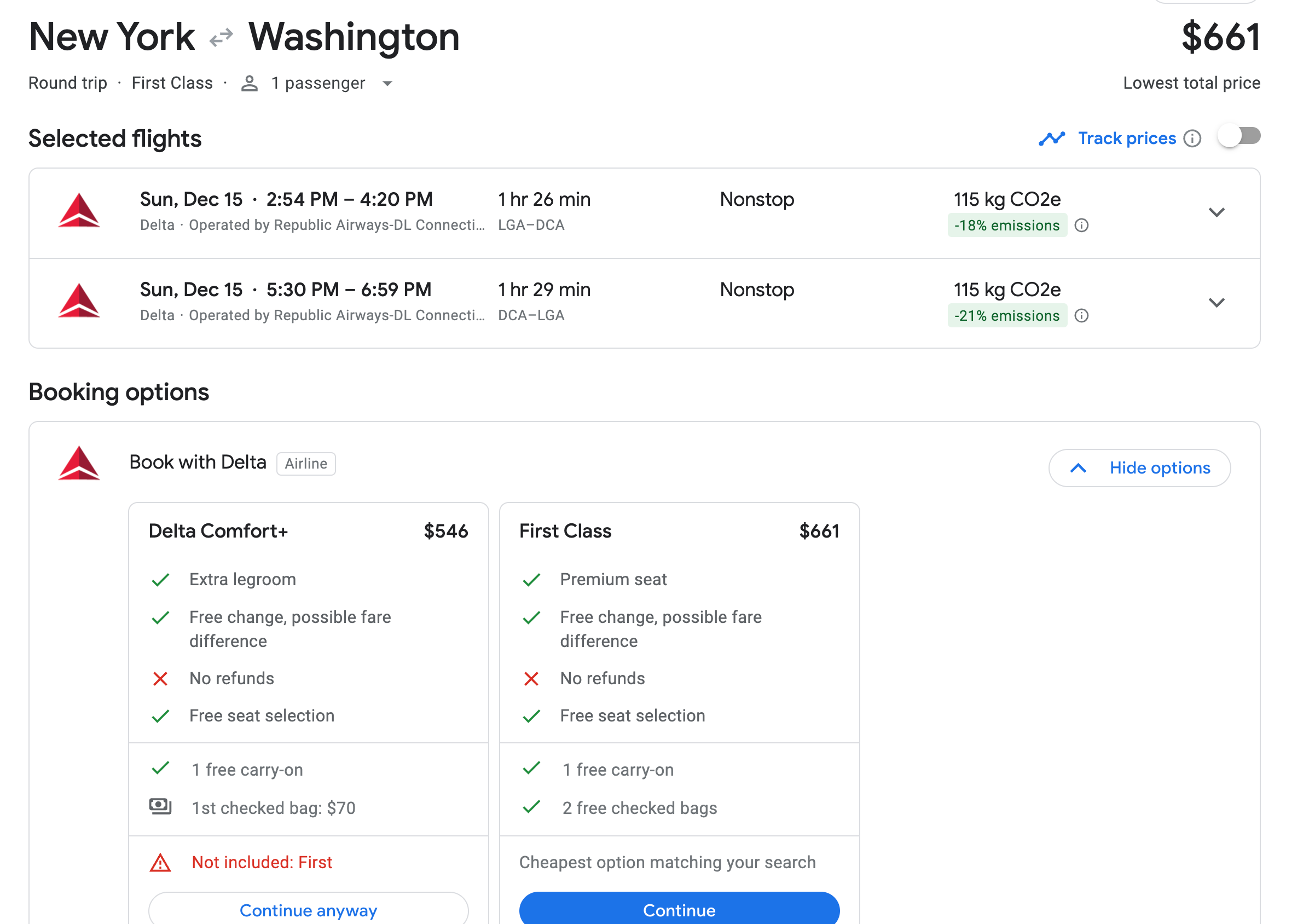 Once you select a city, review the flight results and ensure you fully understand what you're getting into. Same-day turnarounds can be risky — especially with connections — and most cheap flights will book into basic economy unless you override that when you check out. Nevertheless, it may be worth it if one day's travel can help you reach that next elite status tier.