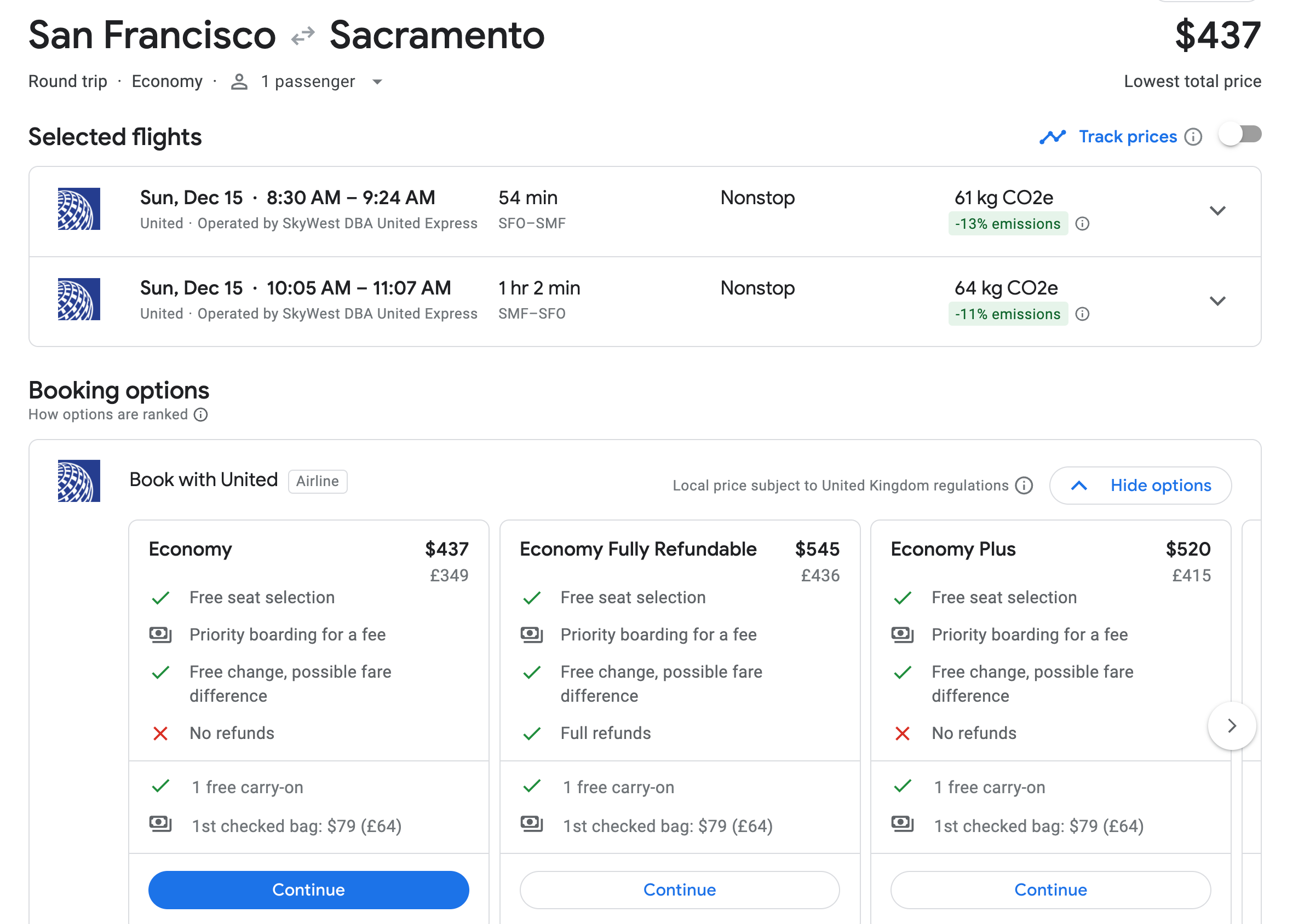 A same-day round-trip from San Francisco International Airport (SFO) to Sacramento International Airport (SMF) on Sunday, Dec. 15, 2024, might be pricey for two one-hour flights, but it is an easy way to rack up PQPs.