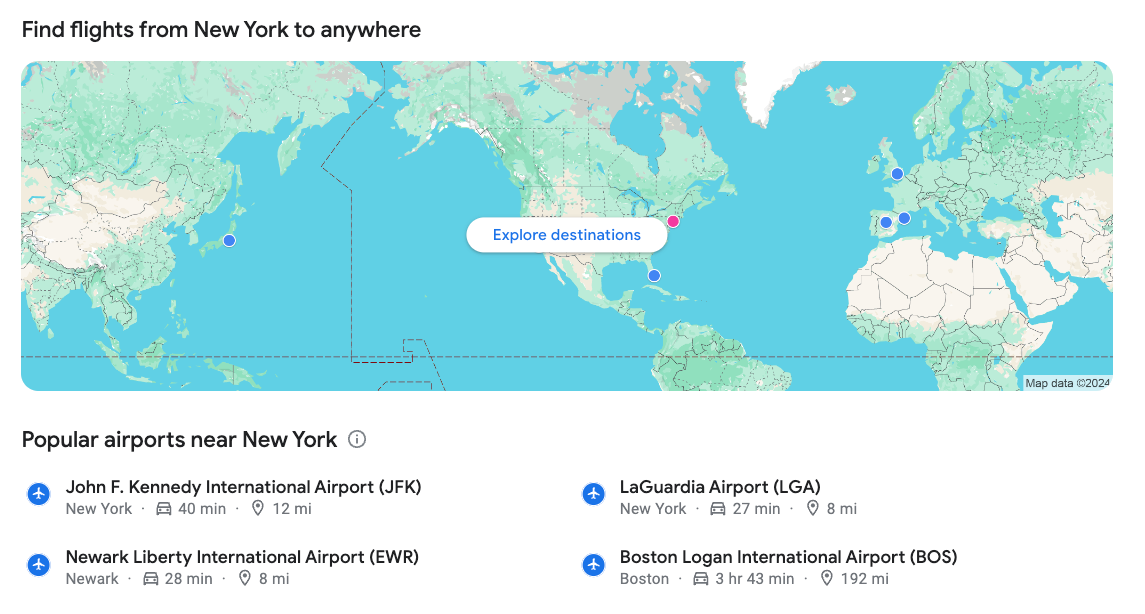 Of course, if you don't live in these cities — or are trying to snag elite status with another airline — the above flights won't help. However, a fantastic functionality in Google Flights lets you quickly identify the cheapest options from your home airport, the "Explore destinations" tool. Here's how it works: